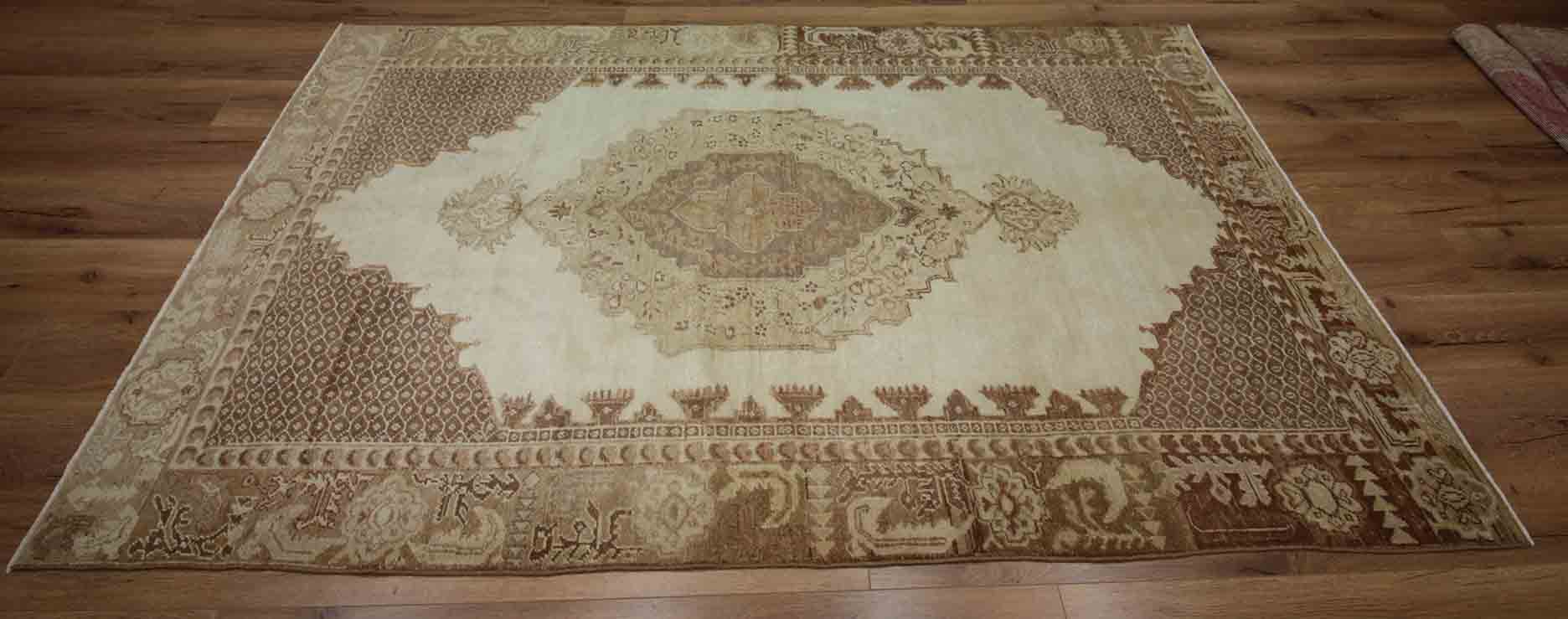 A Beautiful Genuine Turkey Anatolian rug is Hand Knotted by skillful weavers in Turkey with 100% Wool Material. This rug is in Very Good condition. dimensions are 4' 7'' X 7' 8'' in foot and 124 X 216 in centimeter. the primary color is Beige & Ivories. Oriental Rugs , Turkish Rugs , Antique Rugs , Wool Rugs , Area Rugs , Hand-knotted Rugs.