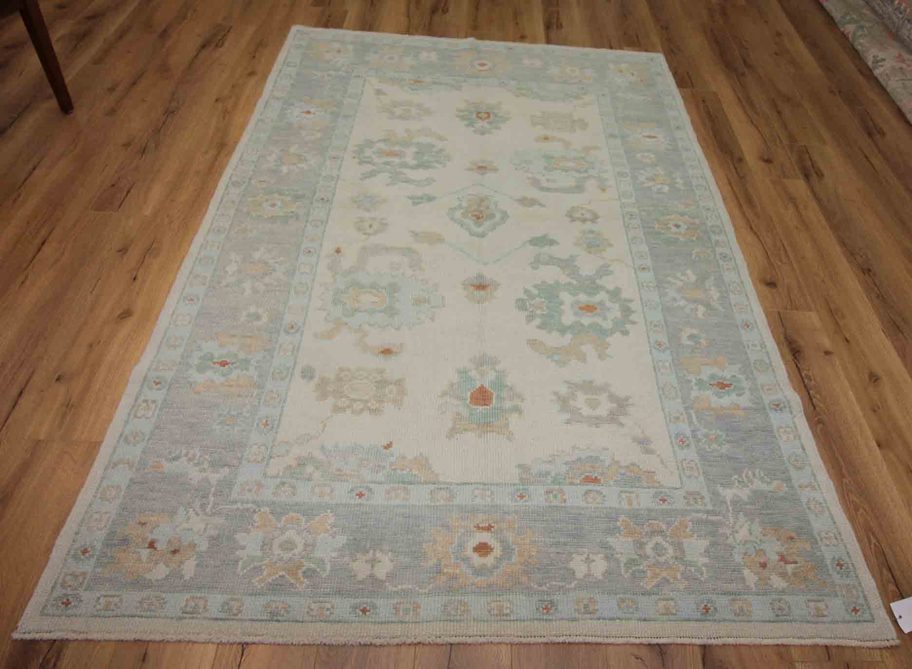 A Beautiful Genuine Turkey Oushak rug is Hand Knotted by skillful weavers in Turkey with 100% Wool Material. This rug is in New, First Quality condition. dimensions are 5' 2'' X 7' 9'' in foot and 153 X 216 in centimeter. the primary color is Ivories. Oriental Rugs , Turkish Rugs , Oushak Rugs , Wool Rugs , Geometric Rugs , Area Rugs , Living Room Rugs , Hand-knotted Rugs , 5x7 Rugs.